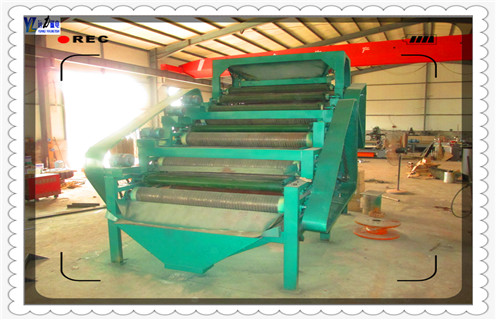 3、錳礦磁選機(jī)皮帶機(jī)體有些選用上級直徑150mm,磁場強(qiáng)度大于13000GS,磁系長度1000mm的全磁磁輥,和下級直徑150、磁場強(qiáng)度大于13000GS,磁系長度900mm的全磁磁輥。